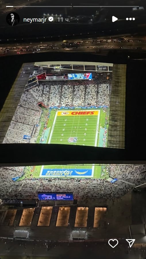 Neymar Joins Fans at NFL Game in São Paulo Between Kansas City Chiefs and Los Angeles Chargers